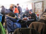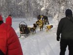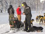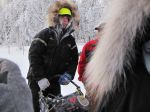 - A crowd gathers to meet the first musher into Central, Brent Sass