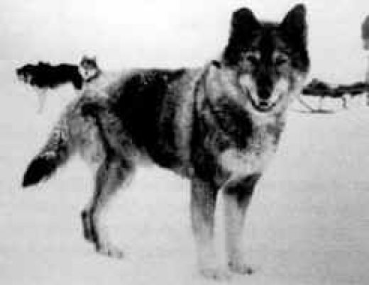 The Serum Drive was Togo’s last long run. In that drive he had worked the hardest and best. I appreciated this, and tried to take the best possible care of the old dog. Togo, in his sixteenth year, seemed content to rest on his laurels. He even posed without fuss for a photograph with his cups and trophies, perhaps imagining himself as he was in the old days. It seemed best to leave him where he could be pensioned and enjoy a well-earned rest. But it was a sad parting on a cold gray March morning when Togo raised a small paw to my knee as if questioning why he was not going along with me. For the first time in twelve years I hit the trail without Togo.