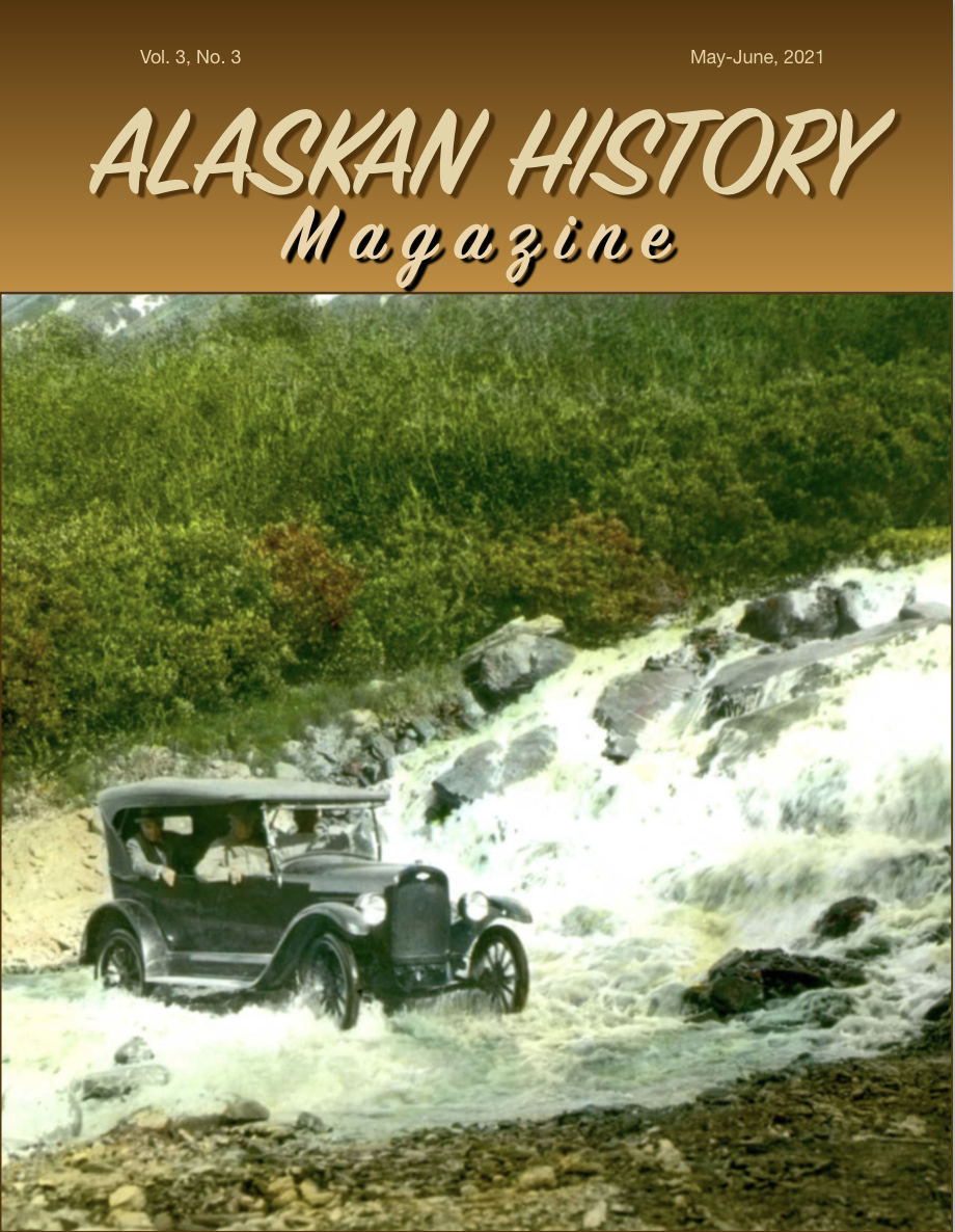 The May-June, 2021 issue of Alaskan History Magazine will include the following articles: • Knik – At one time the largest community on Cook Inlet, and being on the Iditarod Trail, it was the chief outfitting point for much of western Alaska. • Alaska Villlages, Eskimo, Indian, Aleut, 1937 – An unusual look at the villages of Alaska, from the perspectives of students boarding at the Eklutna Vocational School. • An Alaskan “Mush” to Presbytery – The Reverend Samuel Hall Young was known as “The Mushing Parson,” and here he details one trip over the Iditarod Trail. • Historic Alaskan Hot Springs – From the Panhandle to the Seward Peninsula, and from the Arctic Slopes to the Aleutian Islands, thermal hot springs are found all across Alaska. • Hotel Holman / Blix’s Roadhouse – From a roadhouse in a tent beside the Copper River to one of the most respected establishments on the Valdez-to-Fairbanks Trail. • Trading Cards: Captain Cook’s Third Voyage – Small colorful and informative, commercial trading cards from the Arbuckle Coffee Company told of Captain Cook’s final voyage. • 1923 Alaska Railroad Tour Lantern Slides – Presented as a promotional program for the then-new Alaska Railroad, these colorful slides share scenes of Alaska’s Great Circle Tour. The cover is a tinted slide from the tour, showing a Chevrolet crossing a glacier stream near the Worthington Glacier on the Richardson Highway. Click below to pre-order the May-June issue, mailed April 15th.