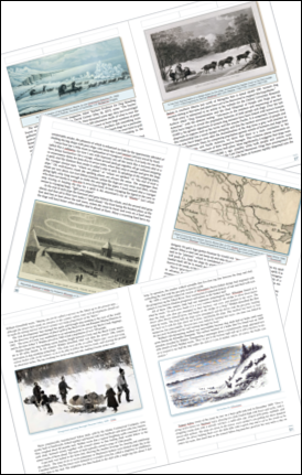 Softcover paperback printed in full color on premium stock paper, 416 pages, 8.5″ x 11″ format, dozens of b/w and color photographs, images, and artwork, extensively annotated, resources, bibliography, indexed. Published by Northern Light Media. $69.95 plus $6.50 shipping and handling. The important role of sled dogs across the North American continent, from their earliest partnerships with Native peoples to their significance in the opening of the North during gold rush and pioneer times, to their work delivering mail and supplies across Canada and the northern U.S.