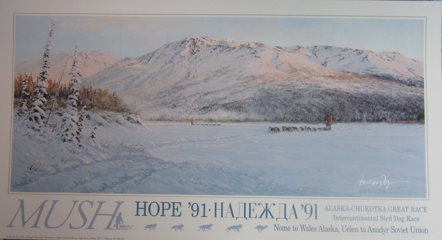 Since December my research and writing has been focused on the historic 1991 Hope Race from Nome, Alaska, to Anadyr, Russia. The genesis of this book came about during a visit to the Alaskan artist Jon Van Zyle in December, when I commented on an unusual sled displayed on the ceiling of his studio. That led to stories of the race, which led to pulling out a photo album, which led to an hour or more of poring over the photos, more stories, more artifacts from the adventures, and now, a few weeks later, Jon and I are working together on this book.