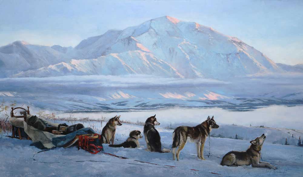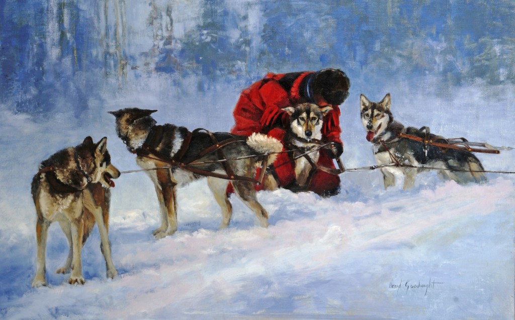 Veryl Goodnight: Sled Dogs in America: Alaska & Beyond will include props used to create the art along with text sharing the little-known history of the many roles sled dogs and their drivers have had in America’s past. That history was detailed in the 2023 book, ‘The History of Sled Dogs in North America,’ by Helen Hegener (Northern Light Media), for which Veryl supplied the cover art and more than a dozen of her original paintings.