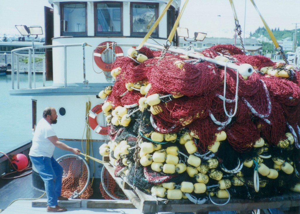Left: Ron loading a seine onto the front deck of the MUTUAL. You don’t realize how big and heavy a seine net is until you have to find room for it.