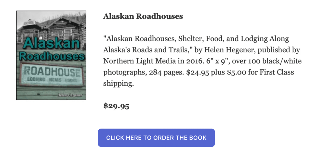 Researching my recent book on the history of the Iditarod Trail included revisiting the many roadhouses which lined the route between Seward and Nome, from mere tents in the wilderness to expansive log roadhouses which still serve travelers today. The names of many of the roadhouses were new to me, signaling a need to revise my 2016 book, Alaskan Roadhouses, which will be a research project for this summer, with revising next fall and winter, and publication in the spring or summer of 2027.