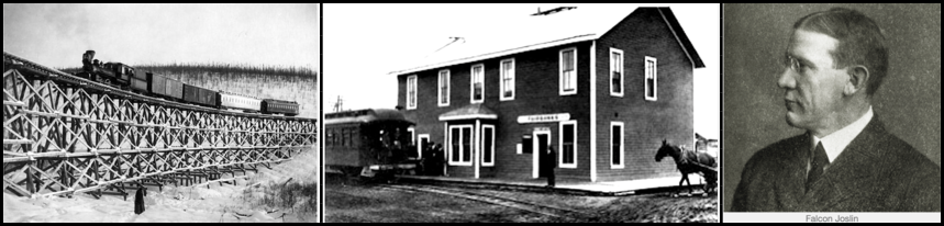 The history of Falcon Joslin and his visionary Tanana Valley Railway are included in this issue. The TVR was Joslin’s visionary dream, planned as a rail line reaching north and east to Circle City on the Yukon River, at that time the center of the Circle Mining District and the landing for steamboats heading upriver to the town of Eagle, or to Dawson City in the Yukon Territory, or downriver to Nenana, Ruby, Nulato, and St. Michael on Norton Sound, and the Bering Sea. When the Alaska Railroad was constructed and planning for the northern portion was under consideration, parts of Joslin’s Tanana Valley Railway were incorporated.