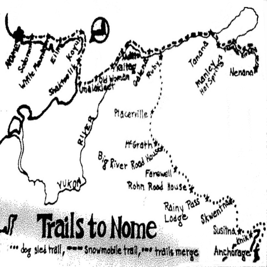 During the Solomon Derby, a race run from Nome to Solomon and back, Scotty Allan’s peerless leader Baldy somehow sensing that something was wrong, stopped the entire team, turned them and the sled around, and headed back down the trail in search of their missing musher. They found him lying unconscious on the trail, bleeding from a gash in his head. Scotty had been bending over to inspect a runner when he was hit in the temple by an iron trail marker and knocked off the sled. Revived by his anxious dog Baldy, the injured musher climbed back aboard his sled and they sped off to win the race. Scotty later credited Baldy for saving his life, and Esther Birdsall Darling, who was Scotty Allan’s kennel partner, immortalized the dog in her classic book, Baldy of Nome (A.M. Robertson & Sons, 1913).